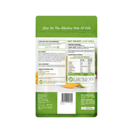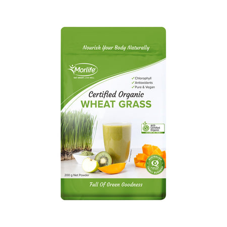 Morlife Certified Organic Wheat Grass is a potent super green made from the young grass shoots of wheat. It is a natural source of nutrients and phytochemicals.