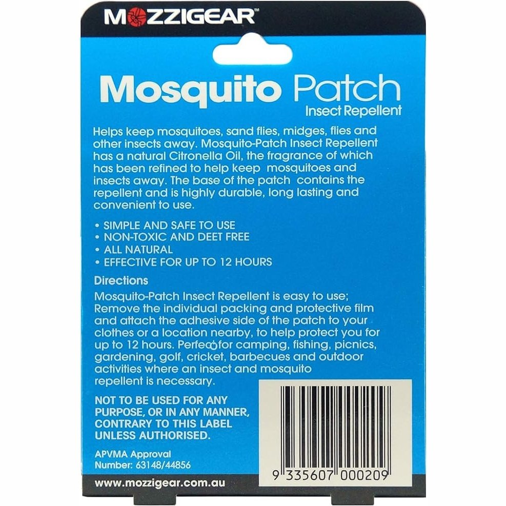 Remove the patch from its individual packing to release the citronella scented fragrance and apply it to any surface (e.g. clothes, caps, strollers, furniture) to provide up to 12 hours protection.
