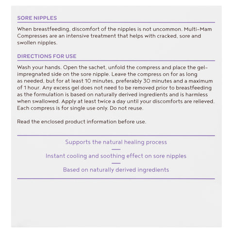 When breastfeeding, discomfort of the nipples is not uncommon. Multi-Mam Compresses are an intensive treatment that helps with cracked. sore and swollen nipples.