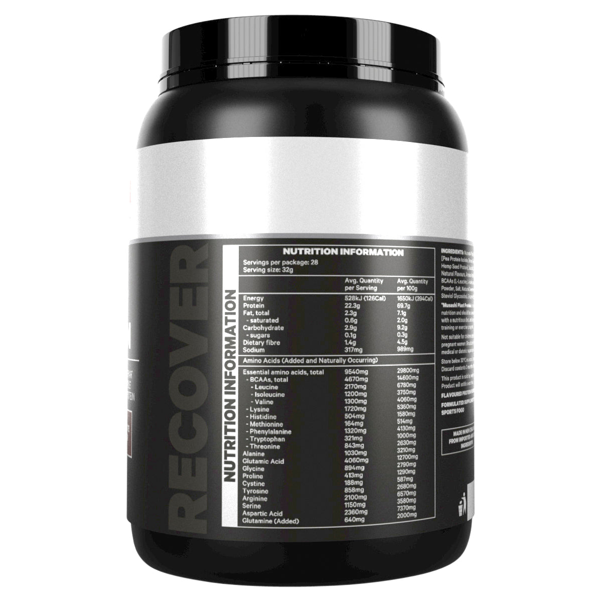 Musashi Plant Protein Blend (86%) [Pea Protein Isolate (82%), Brown Rice Protein Concentrate (3%), Chia Protein (0.5%)], Natural Flavours, Soluble Corn Fibre (3%), Cocoa Powder, Amino Acids [L-Glutamine (2%), BCAAs (1%) (L-Leucine, L-Isoleucine, L-Valine)], Medium Chain Triglycerides (MCT) Powder (0.5%), Salt, Natural Sweeteners (Thaumatin, Steviol Glycosides), Enzyme (0.2%) (Papain).