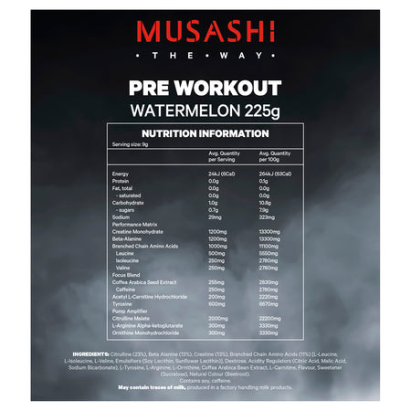 Musashi Pre Workout is best taken as part of a healthy and varied diet.
