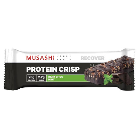 MUSASHI PROTEIN CRISP is the next evolution in the protein bar taste and sensation experience. A delicious and convenient bar loaded with 20g of high quality protein, and a unique combination of crispy and chunky pieces drizzled in milk chocolate.