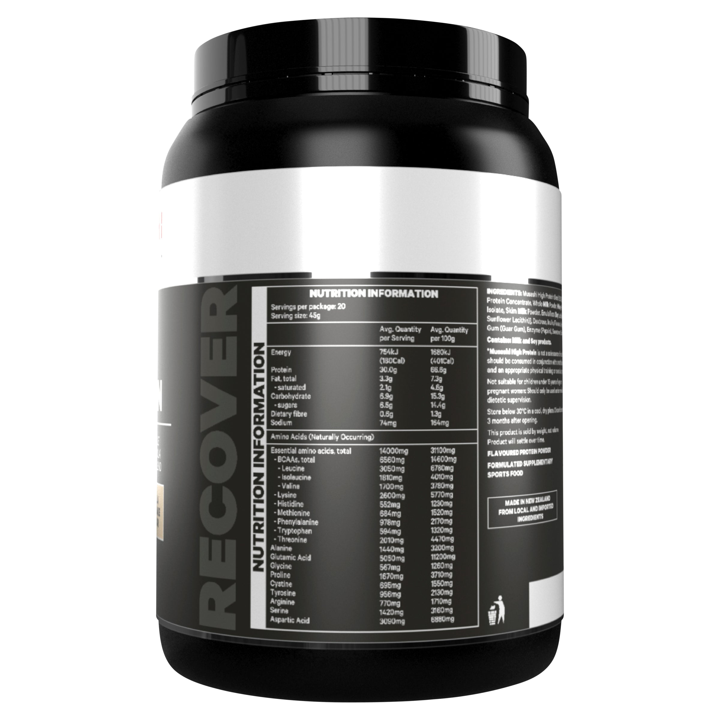 Scientifically formulated to be high in protein for muscle recovery, MUSASHI HIGH PROTEIN contains quality protein sources in a delicious tasting shake. Combining instantised Whey Protein Concentrate, Whey Protein Isolate and Milk Protein Solids, each serve delivers 30 grams of quality protein to help reach your training goals.
