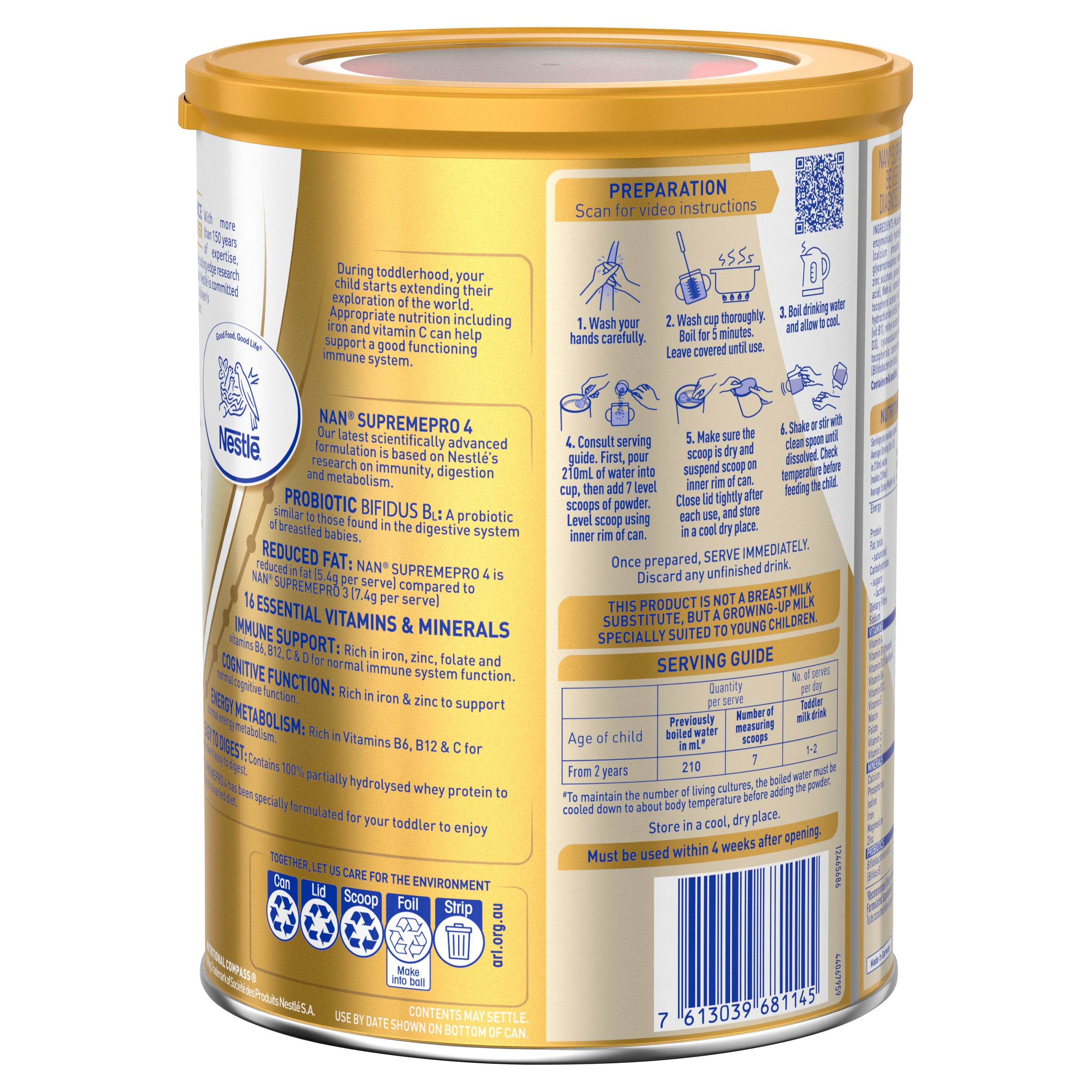 NAN SUPREMEpro 4 has been specially formulated for your toddler to enjoy supplementary to a varied diet when energy and nutrient intakes may not be adequate.