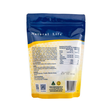 Natural Life Propicol (Propolis & Manuka Honey Candies) with manuka honey MGO 85+ Lemon and Honey x 40 Pack