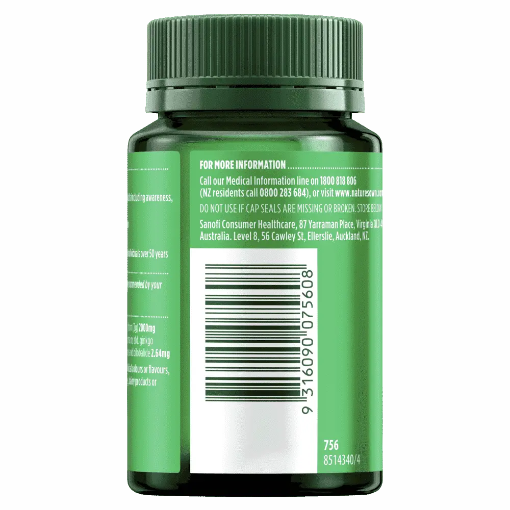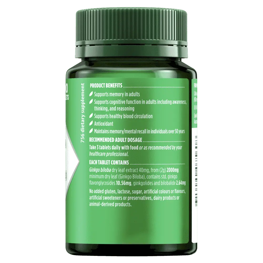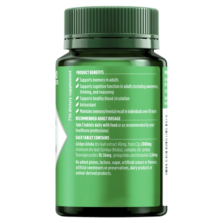 Nature's Own Ginkgo Biloba 2000mg supports memory and healthy cognitive function in adults including awareness, thinking, and reasoning.• Supports memory in adults