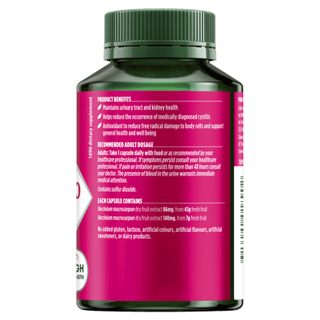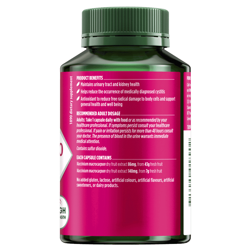 • Urinary tract health: Maintains urinary tract and kidney health.• Cystitis: Helps reduce the occurrence of medically diagnosed cystitis.