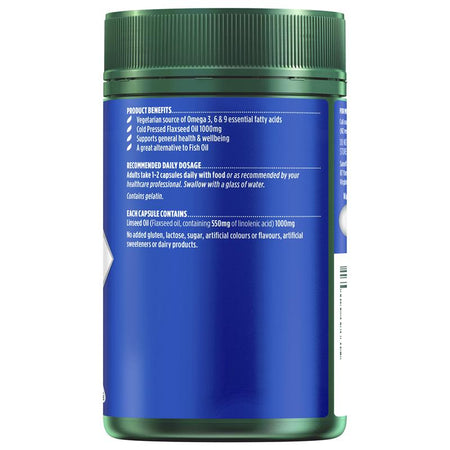 • Fish-free source of Omega 3, 6 & 9 essential fatty acids.• Cold Pressed Flaxseed Oil 1000mg.