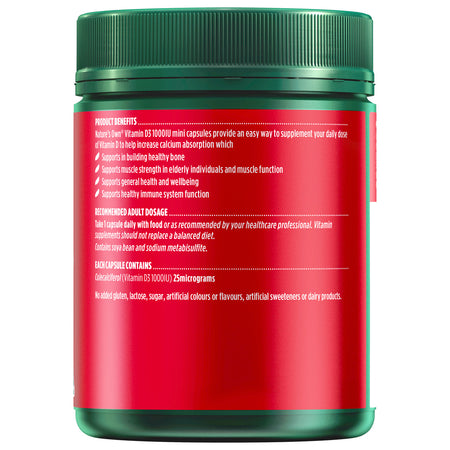 Nature's Own Vitamin D3 mini capsules provide an easy way to supplement your daily dose of Vitamin D to help increase calcium absorption, which: