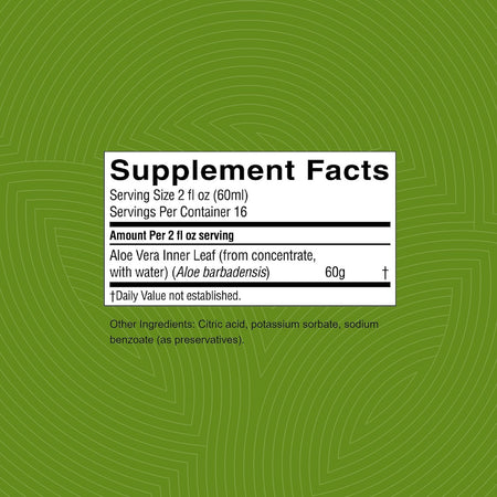 Nature’s Sunshine Organic Aloe Vera Juice is sourced from 100% pure organically grown, non-GMO Aloe Vera inner leaf and is certified by the International Aloe Science Council. Free of herbicides and pesticides, Nature’s Sunshine Organic Aloe Vera Juice is specially processed to avoid the loss of essential vitamins, minerals and other constituents.