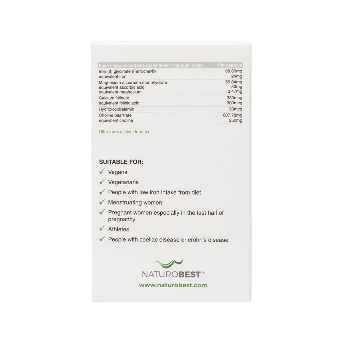 - Ideal for vegans, vegetarians, people with low iron intake from diet and women with menorrhagia