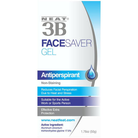 Neat Face Saver Gel should be applied to the forehead, the upper lip and the back of the neck. It should not be applied on or near the eyes, and it should not be applied to the scalp. The product does not appear to cause any reactions with other cosmetic ingredients, and it is entirely safe to use. As with all antiperspirants and cosmetics, there is a slight risk of an allergic reaction to one or other of the product's ingredients, but this will settle when use of the product is stopped.