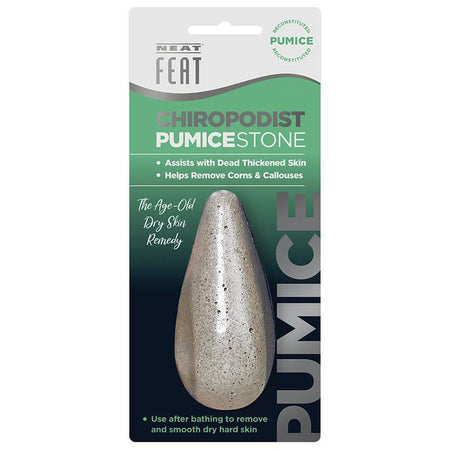 This is a simple regular process to follow to maintain your feet in good shape. During showering use the Neat Feat Foot Scrub Soap, an exfoliate soap that removes ingrained dirt and dead skin. This soap contains kiwifruit seeds and walnut crush which makes for an invigorating scrub. After bathing or showering go over areas of rough or built up skin with the Neat Feat Foot Pumice. Pumice has been used for centuries and works well after feet have been bathed in water.