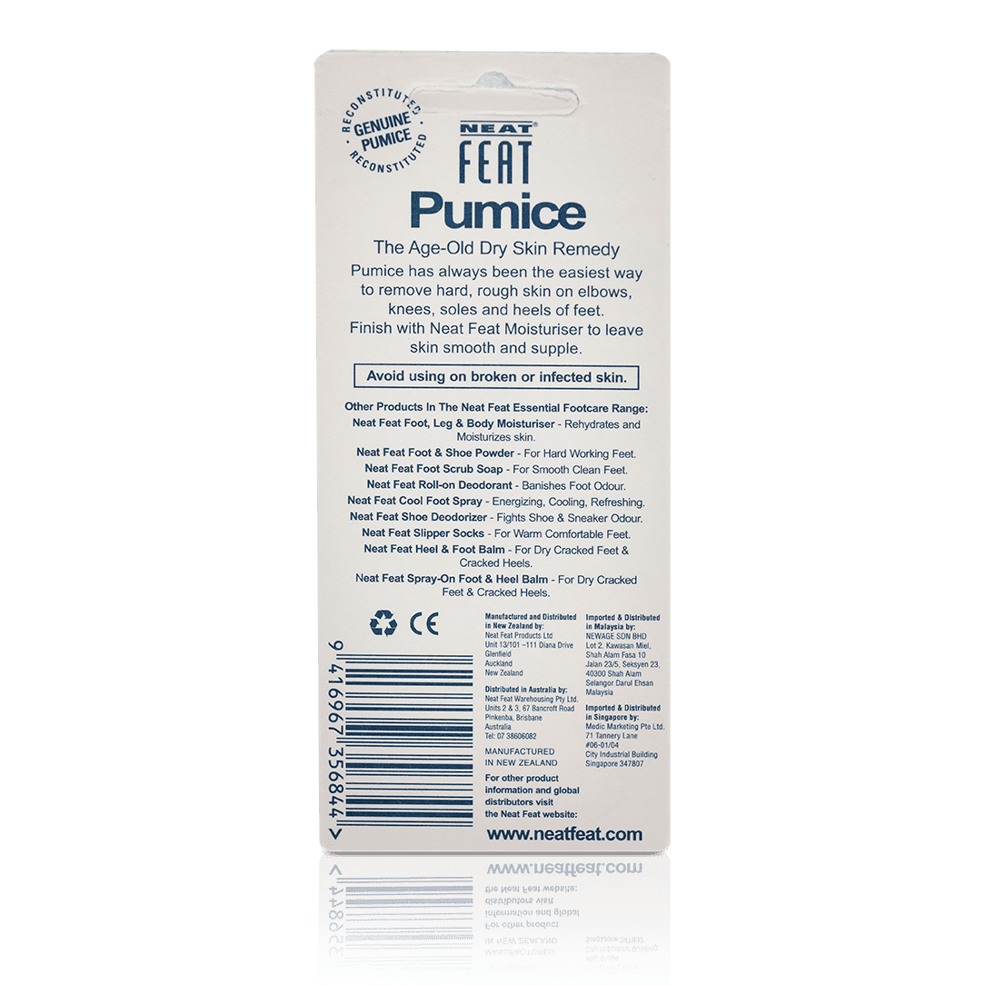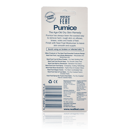 After using the pumice, inspect your feet for any cracks or fissures, apply the Neat Feat Foot and Heel Balm to affected areas. Once cracks have disappeared massage in on a regular basis the Neat Feat Foot and Leg Moisturizer a rich cream that has been especially developed to repair extra dry skin.