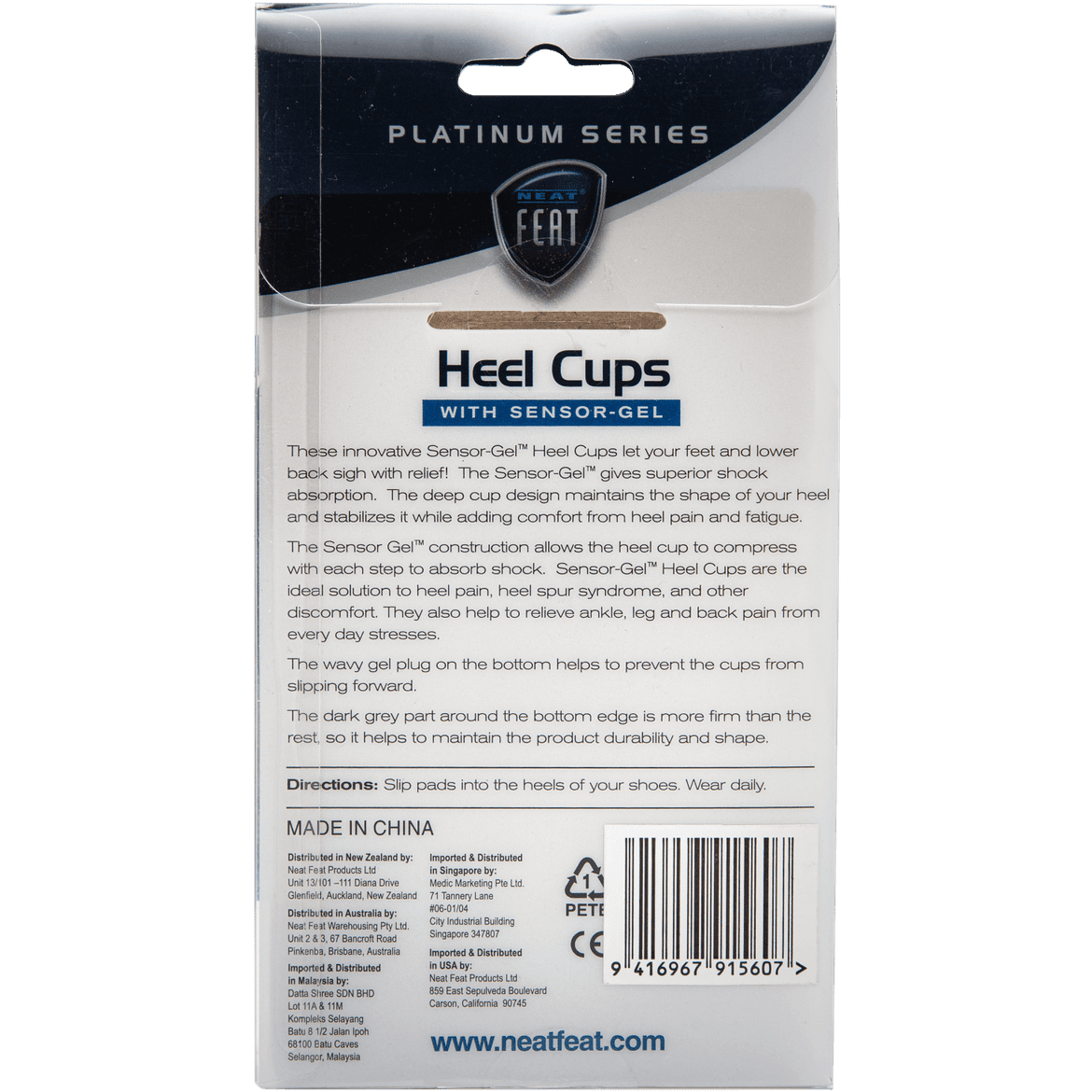 By using the Neat Feat Gel Heel Cups you can cradle your heel and provide stability while walking. The construction absorbs the pounding shock of the heel.