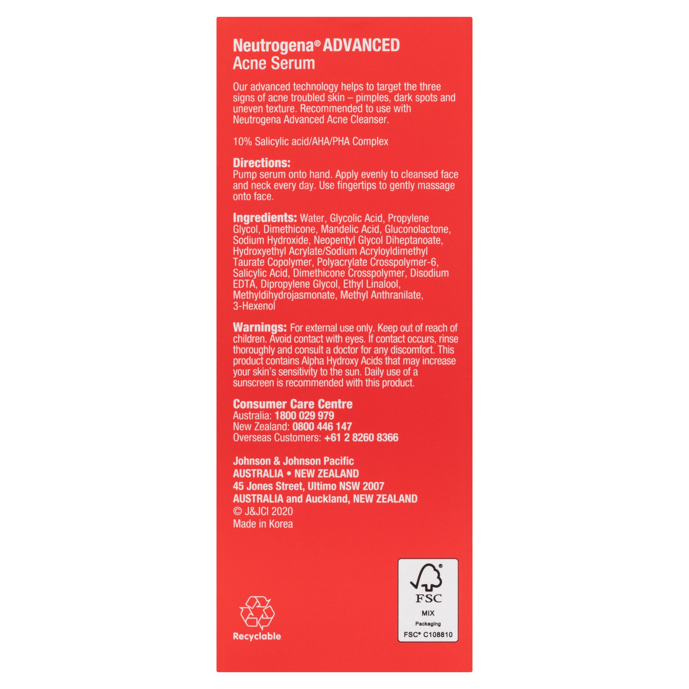 Neutrogena's advanced technology helps to target the three signs of acne troubled skin - pimples, dark spots and uneven texture. 10% Salicylic acid/AHA/PHA Complex.