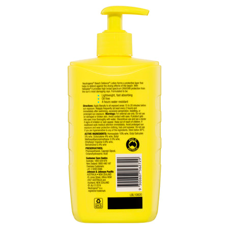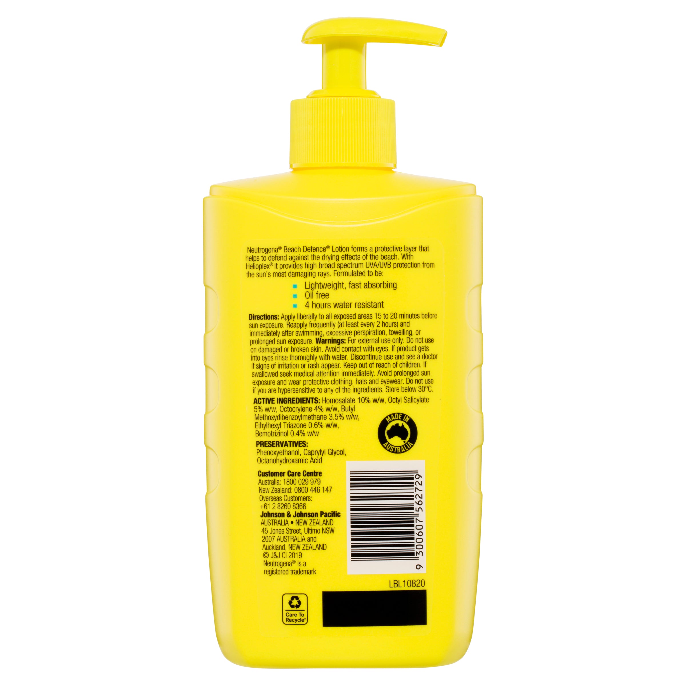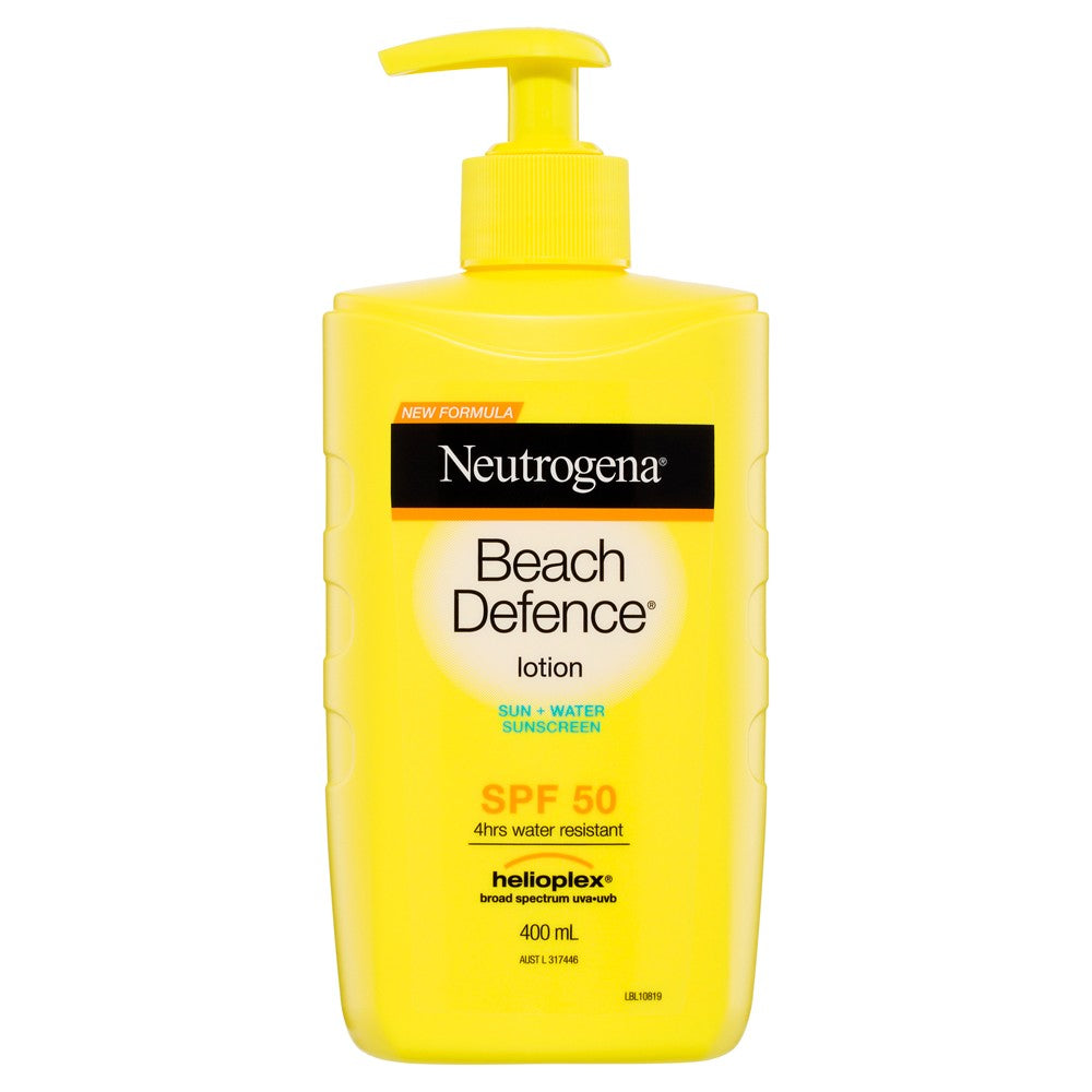 Neutrogena Beach Defence Sunscreen Lotion SPF 50 is sun and water sunscreen for up to 4 hours water resistant. Value Pack 400mL.