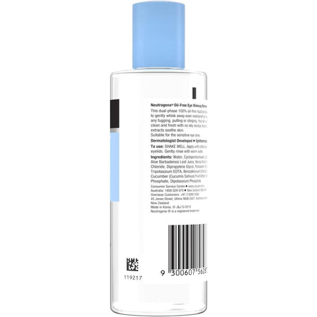 Neutrogena Oil-Free Eye Make-up Remover takes off even waterproof eye make-up without leaving an oily residue. This ultra-gentle dual-phase formula activates when shaken to gently whisk away even waterproof eye makeup without any tugging, pulling, or stinging. Your skin is left feeling clean and fresh. Aloe and Cucumber extracts soothe skin. Take off all eye makeup the gentle way. Dermatologist and ophthalmologist tested to be gentle and effective.