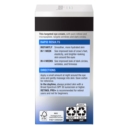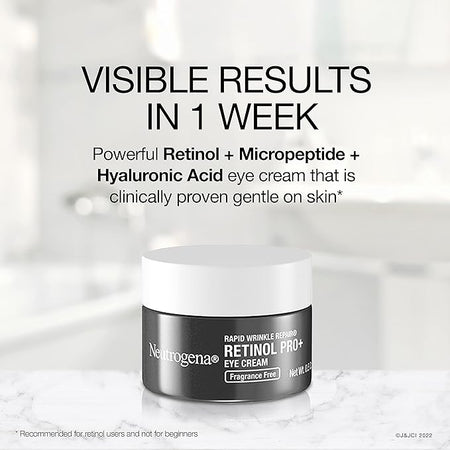 For an experienced user, Neutrogena Retinol Pro+Eye Cream targets wrinkles and dark circles and provides rapid results.With 0.05% Pure Retinol, a form of vitamin A and a dermatologist-proven powerhouse ingredient, and Micropeptide, that complements retinol and targets the visible effects of collagen-depleted skin.