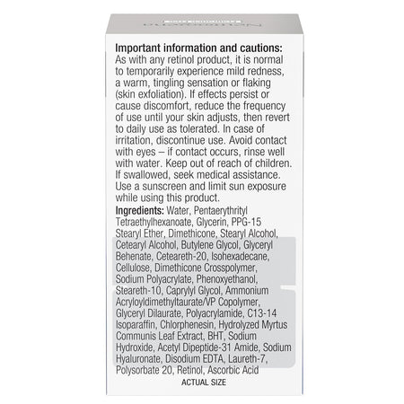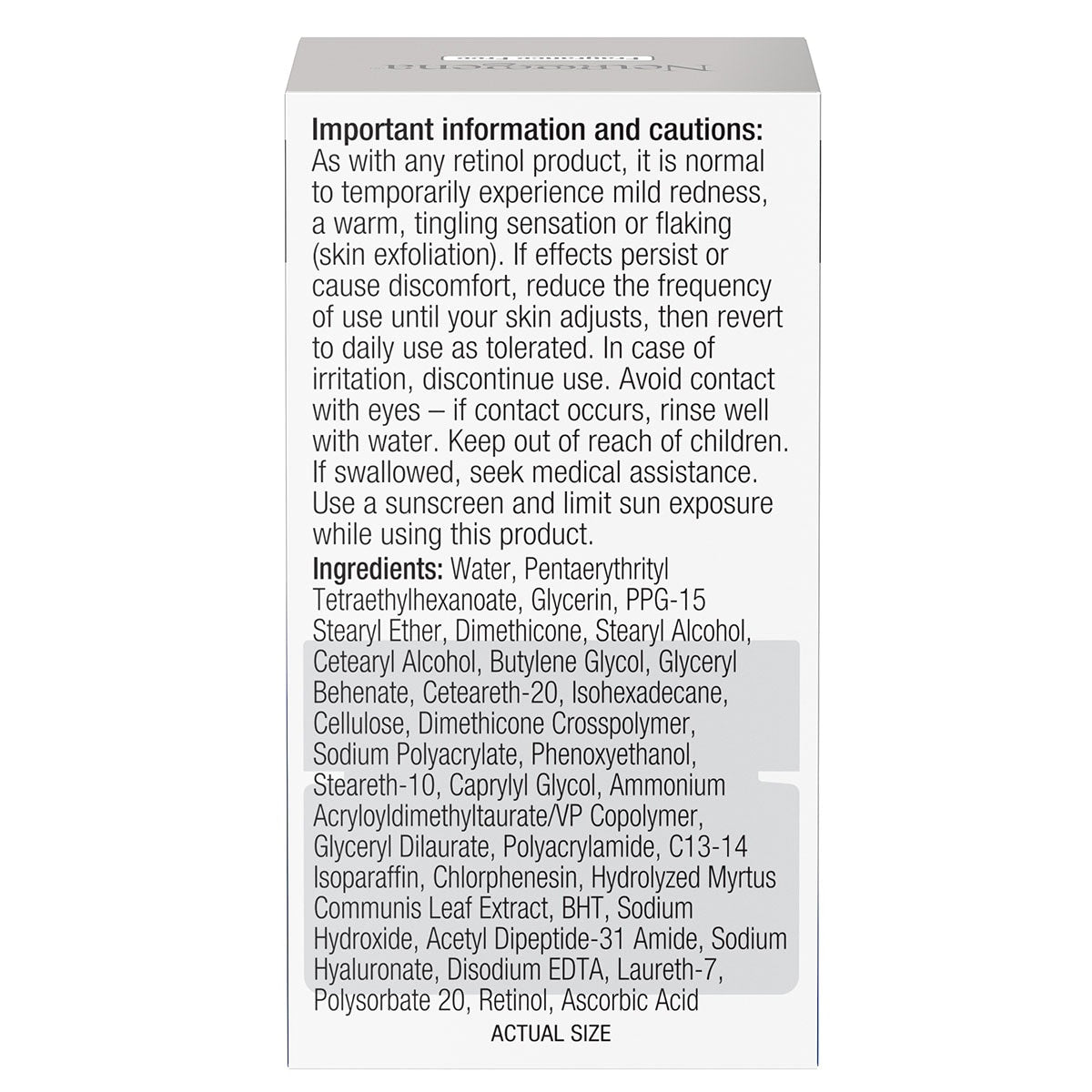 As with any retinol product, it is normal to temporarily experience mild redness, a warm, tingling sensation or flaking (skin exfoliation). If effects persist or cause discomfort, reduce the frequency of use until your skin adjusts, then revert to daily use as tolerated. In case of irritation, discontinue use. Avoid contact with eyes - if contact occurs, rinse well with water. Keep out of reach of children. If swallowed, seek medical assistance. Use a sunscreen and limit sun exposure while using this product.