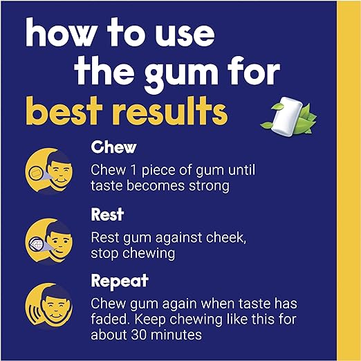 Step 1- Initial 12 weeks. Chew one piece of gum whenever there is an urge to smoke. Use 8-10 pieces/day.
