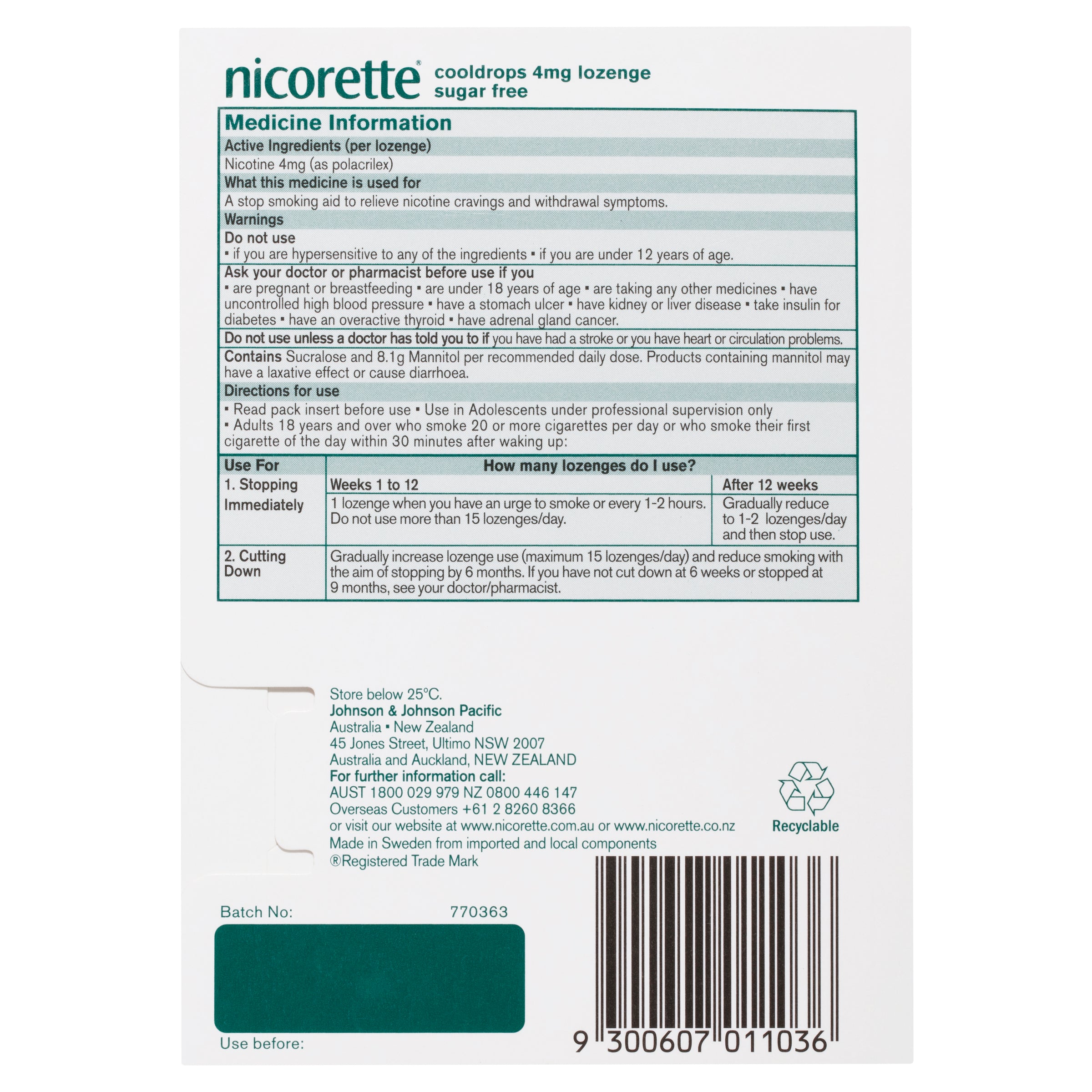 NICORETTE® Cooldrops are designed for you to use whenever there is an urge to smoke. Most smokers require 8 to 12 lozenges per day. Do not use more than 15 lozenges per day.