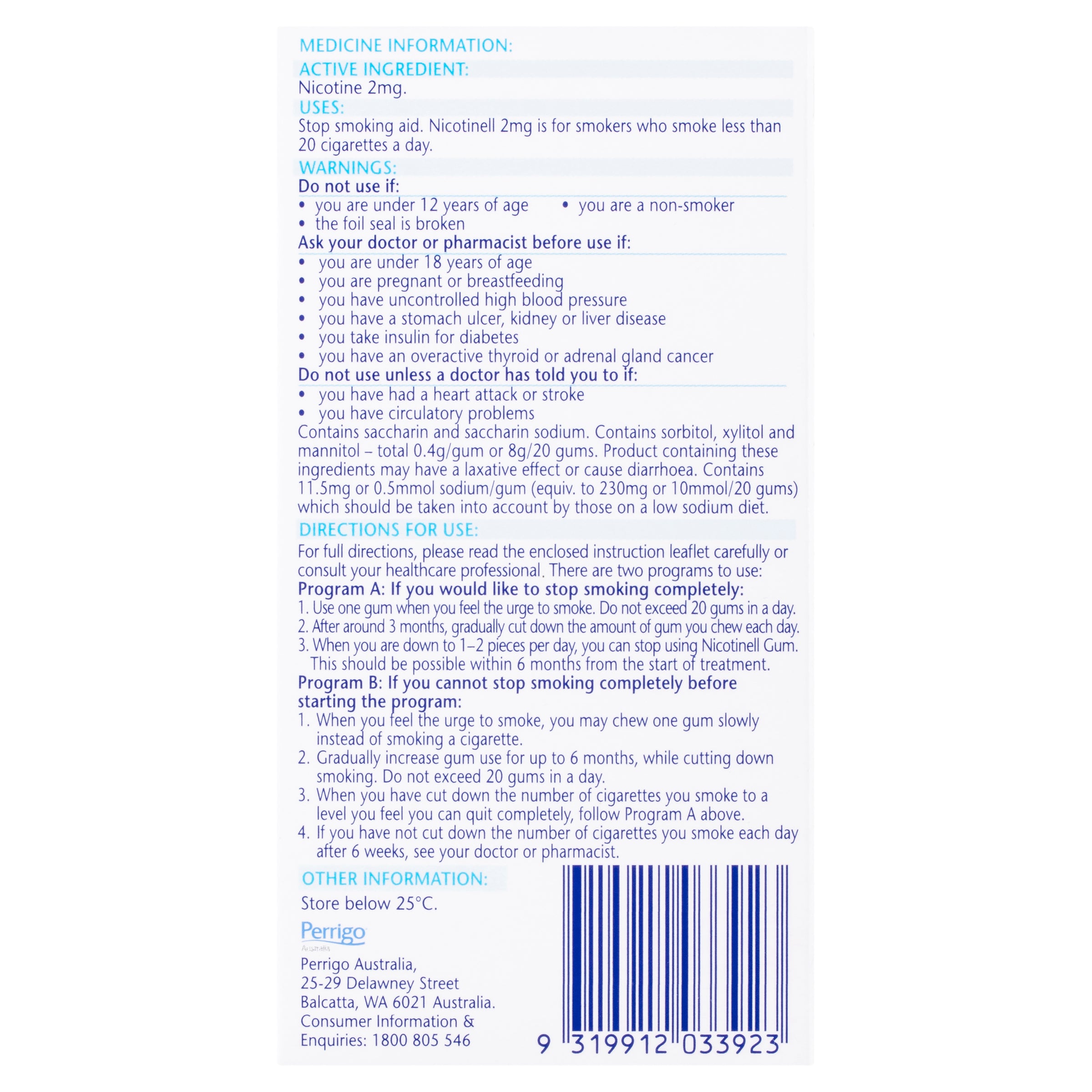 Chew one piece of Nicotinell slowly when you feel the urge to smoke. Do not exceed 20 gums in one day. For full instructions, please read the enclosed instruction leaflet carefullly.