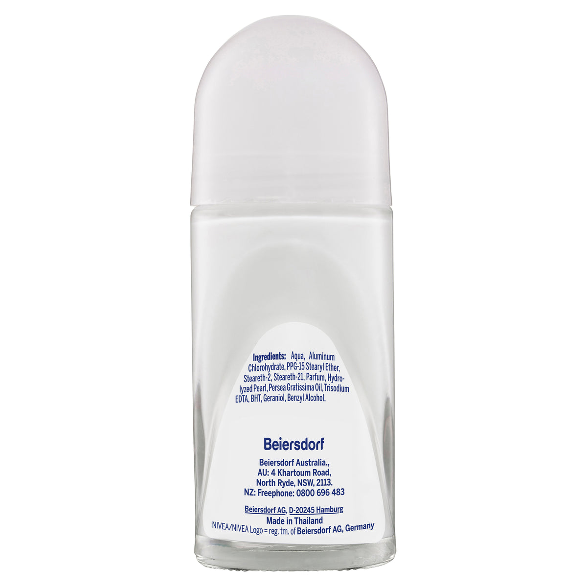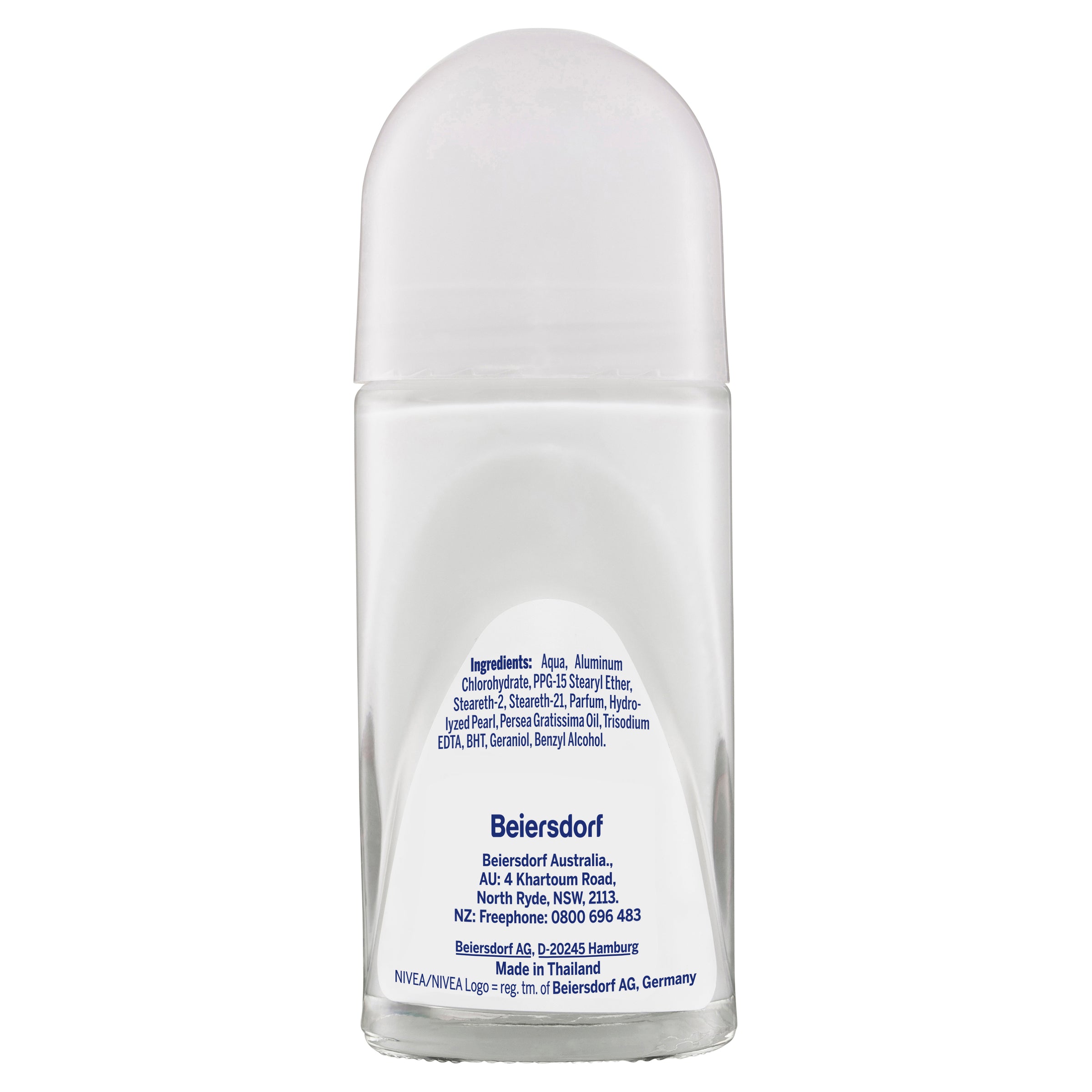 Aqua, Aluminum Chlorohydrate, PPG-15 Stearyl Ether, Steareth-2, Steareth-21, Parfum, Hydrolyzed Pearl, Persea Gratissima Oil, Trisodium EDTA, BHT, Geraniol, Benzyl Alcohol.