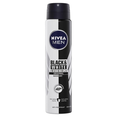 Keep your black clothes black and white clothes white for longer with Invisible For Black & White Power Aerosol Deodorant. This is the first antiperspirant deodorant that protects against yellow sweat stains on white and white marks on black clothes. This deodorant uses a technology with a specific anti-staining compound to protect the textile fibres before stain components can reach and penetrate them. Then with the use of aluminum salts, that are dissolved in an emulsion and coated with masking oils, the white residue sometimes left by deodorants is invisible on clothing.Size: 250ml.