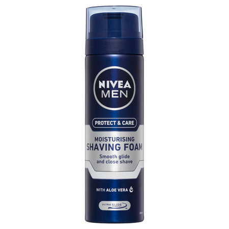 Does your skin tend to dry out and become easily irritated from shaving? You are in the right place. NIVEA MEN Protect & Care Moisturising Shaving Foam with Aloe Vera and Pro-Vitamin B5 cares for your skin and protects it from drying out. Skin compatibility dermatologically approved. Nivea Men. It starts with you.Size: 200mL.