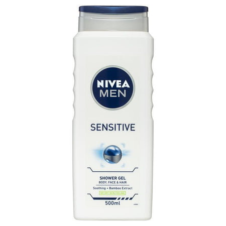 Skin feeling irritated? Protect your skin. NIVEA Men 3-in-1 Sensitive Shower Gel for Body, Face & Hair cleans and protects sensitive skin, leaving it feeling revitalised and cared for.Our caring formula with bamboo milk provides skin with long-lasting freshness. With 0% ethylalcohol, it is PH skin-balanced and dermatologically approved for skin tolerance.