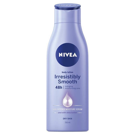 The NIVEA Irresistibly Smooth Body Lotion is infused with the NIVEA DEEP MOISTURE SERUM and precious Shea Butter.The patented NIVEA formula uses the knowledge that our skin contains sufficient moisture in its deeper layers.