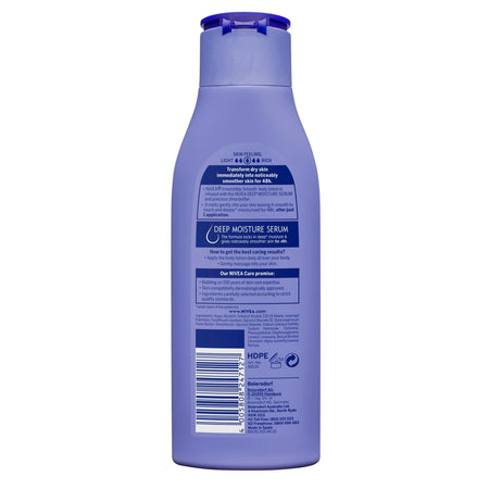 The latest testing methods have shown that the perfect combination of high quality ingredients of our NIVEA body lotions together with the NIVEA DEEP MOISTURE SERUM penetrates deeply into the skin, locking moisture and providing deep* moisture for 48h.