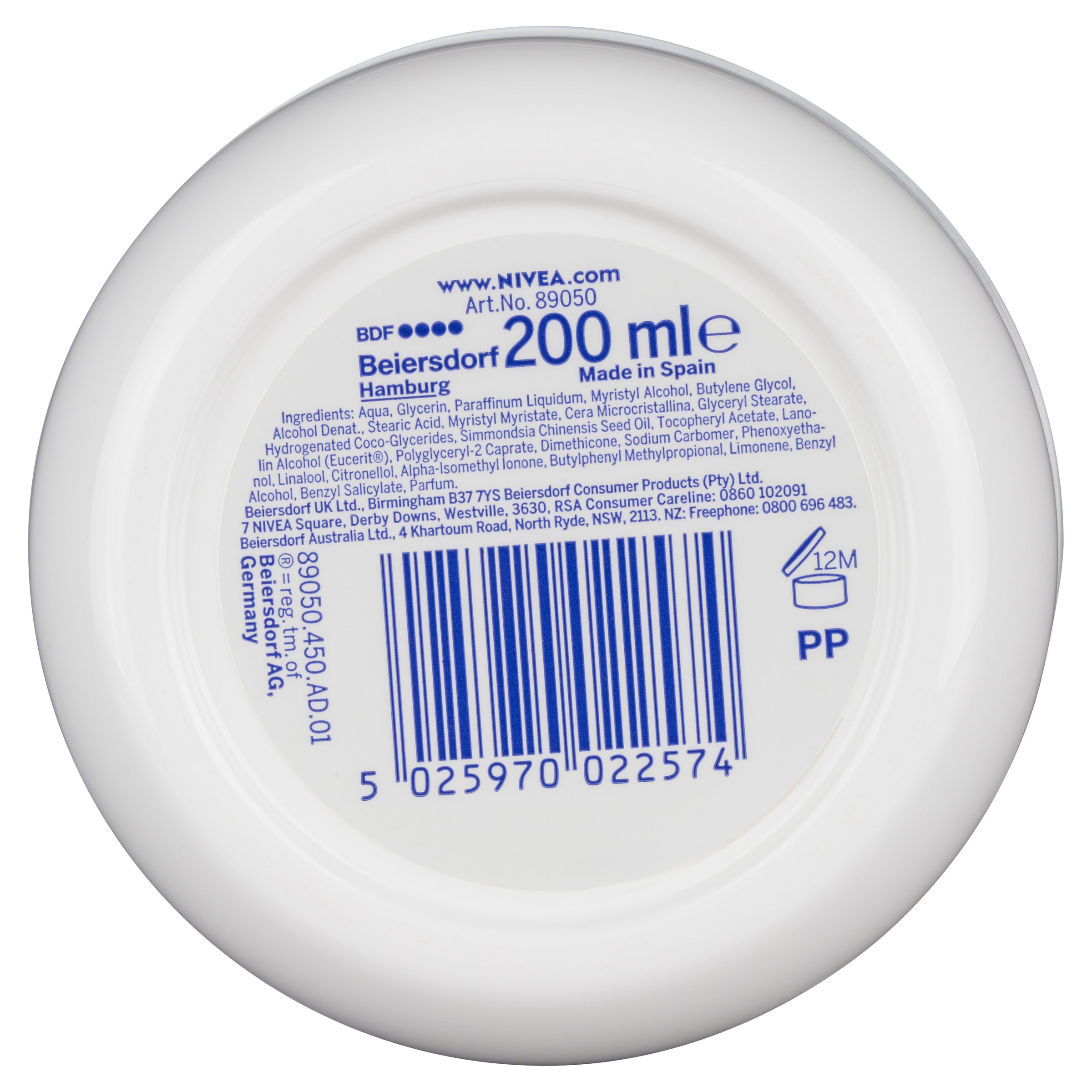Aqua, Glycerin, Paraffinum Liquidum, Myristyl Alcohol, Butylene Glycol, Alcohol Denat., Stearic Acid, Myristyl Myristate, Cera Microcristallina, Glyceryl Stearate, Hydrogenated Coco-Glycerides, Simmondsia Chinensis Seed Oil, Tocopheryl Acetate, Lanolin Alcohol (Eucerit®), Polyglyceryl-2 Caprate, Dimethicone, Sodium Carbomer, Phenoxyethanol, Linalool, Citronellol, Alpha-Isomethyl Ionone, Butylphenyl Methylpropional, Limonene, Benzyl Alcohol, Benzyl Salicylate, Parfum