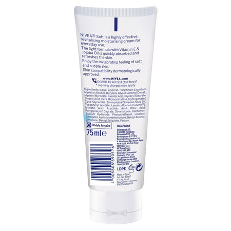 NIVEA® Soft is a highly effective, intensive moisturizing cream foreveryday use. The light formula with Vitamin E & Jojoba Oil is quickly absorbed and refreshes the skin. Enjoy the invigorating feeling that leaves your skin soft and supple.