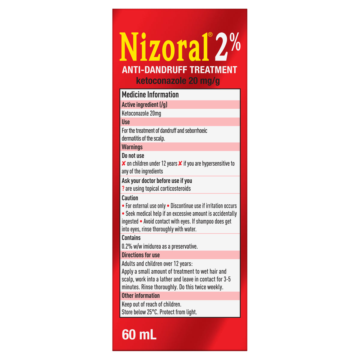 Nizoral 2% Anti-Dandruff Treatment is for the treatment of dandruff and seborrhoeic dermatitis of the scalp.Suitable For: For the treatment of dandruff and seborrhoeic dermatitis of the scalp