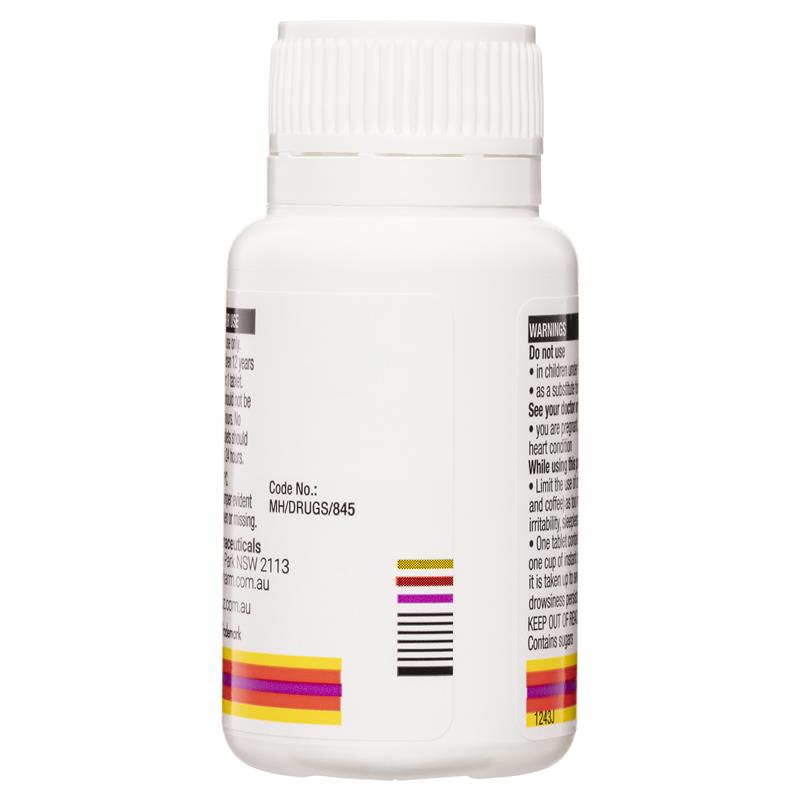 Each tablet contains Caffeine 100mg & Glucose.