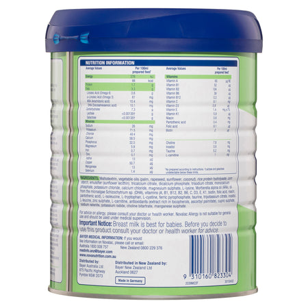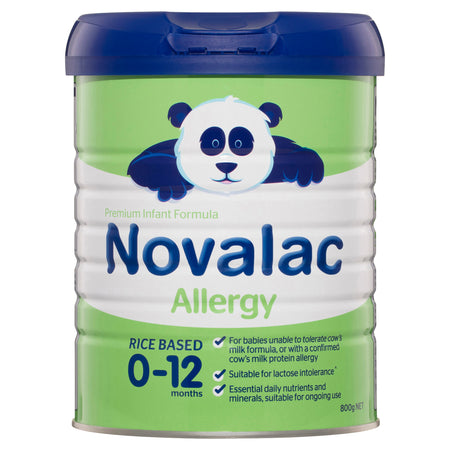 Novalac Allergy has been specially formulated with protein sourced from rice. It may help reduce the symptoms associated with cow's milk protein allergy. Suitable for lactose intolerant babies. Designed for babies from birth to 12 months of age. Novalac Allergy is suitable for ongoing everyday use. Babies aged over 6 months should be offered solid food in addition to infant formula.