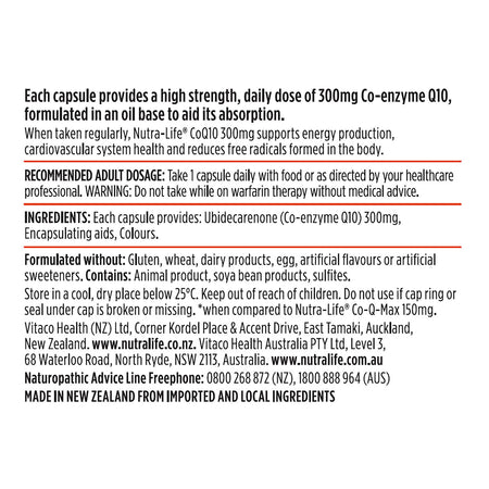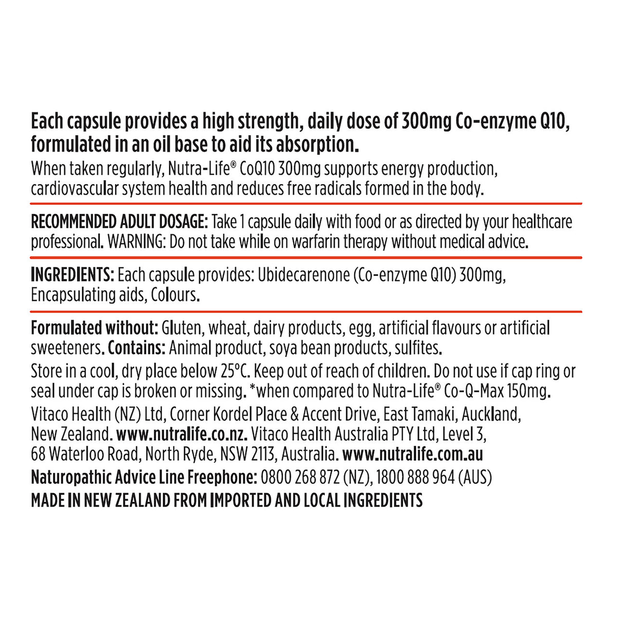 Nutra-Life CoQ10 300mg Capsules provide a powerful dose of CoQ10 to support heart health. With a 300mg dose in each capsule, this supplement is ideal for daily support of cardio health and cellular energy production. The 30-capsule bottle provides a one-month supply. Each capsule is gluten-free and free from artificial colors and flavors.