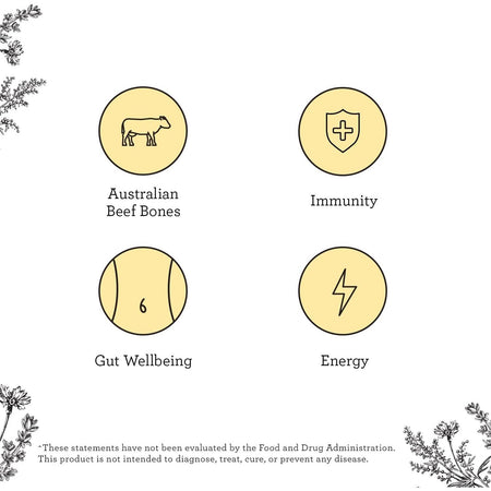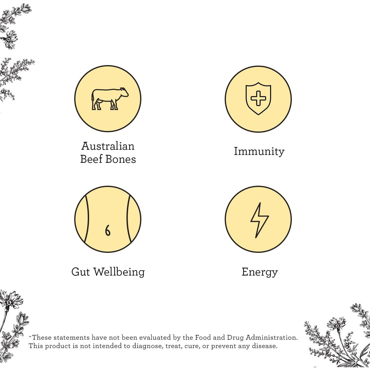 Bone broth has been made for hundreds of years by our grandparents and their grandparents due to traditional gut loving properties. The amino acids present in Beef Bone Broth are in a specific ratio that is unique, and otherwise not available in the lean cuts of meat commonly consumed, but which are beneficial. Our Beef Bone Broth also contains the added benefit of Vitamin B12 that, as part of a healthful and varied diet, will support immunity, as well as Turmeric with 5 % curcumin content for potency. Leading busy lives can make it hard to find time to make bone broth from scratch.