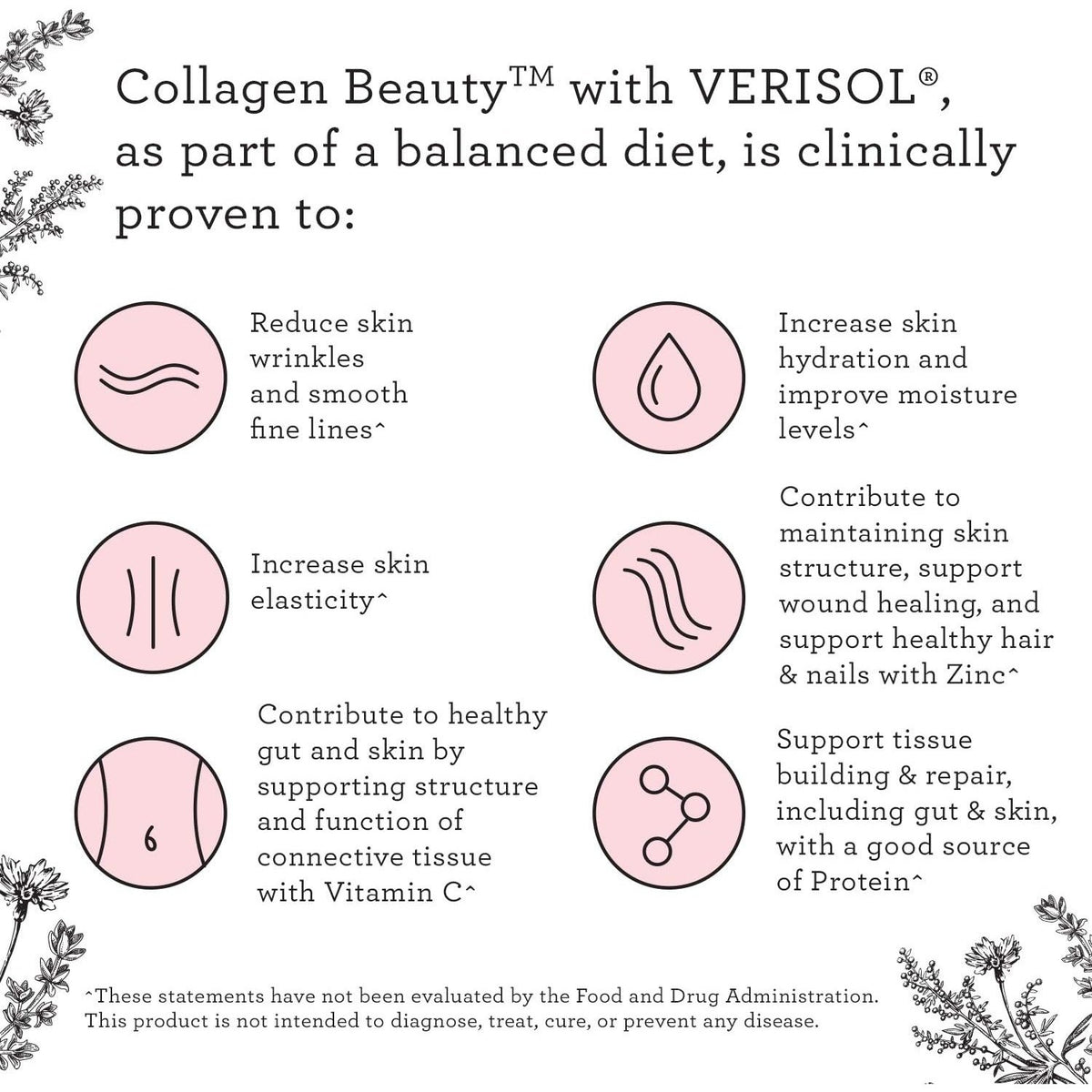 Collagen Beauty™ is a natural formulation with VERISOL® Bioactive Collagen Peptides to support structural integrity of skin and may decrease skin aging factors after 8 weeks of use, supporting skin quality of the entire body. Research has shown that consuming Collagen Beauty™ with VERISOL®, as part of a balanced diet, may: