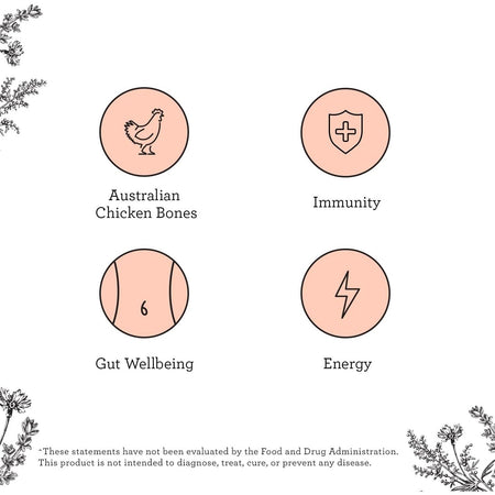 Chicken bones are added to filtered water and apple cider vinegar (to maximise nutrient extraction) then slow cooked for over 18 hours. The broth is then strained for impurities and the fat is skimmed off the top. It is gently refractance dried into a powder, taking care to preserve the nutritional profile.
