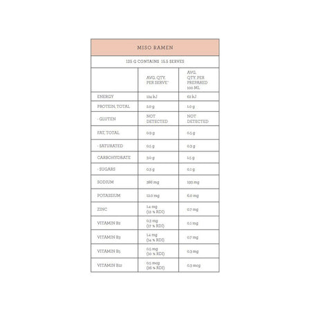 Red Miso* (50%) (Soybeans*, Rice*, Salt, Aspergillus oryzae*), Australian Free Range Chicken Bone Broth* (25%) (Chicken Bones*, Onion*, Apple Cider Vinegar*), MCT Oil*, Deactivated Savoury Yeast Flakes, Pink Himalayan Salt, Roasted Chicken, Tapioca Starch*, Onion, Garlic, Black Pepper, Rosemary Extract. *Certified Organic Ingredients