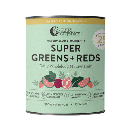 Nutra Organics Organic Super Greens + Reds (Wholefood Multivitamin) Watermelon Strawberry 300g
