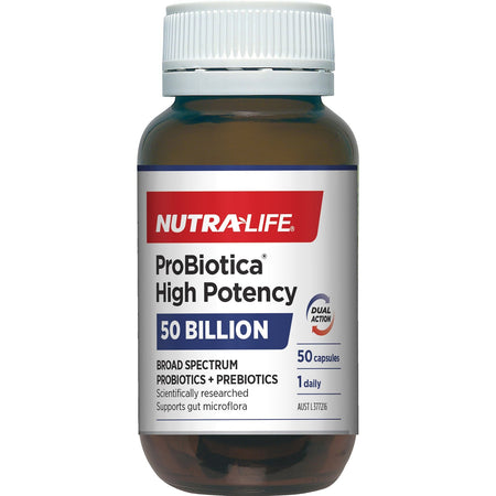 This broad spectrum probiotic offers a real solution for digestive and immune health. Made from 11 researched strains and containing scientifically researched probiotic strain Howaru®, Nutra-Life ProBiotica ™ High Potency may help to support: