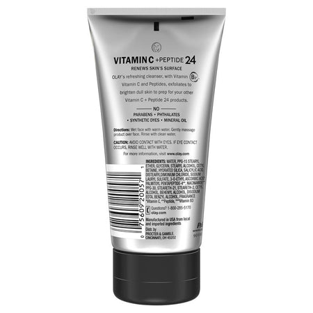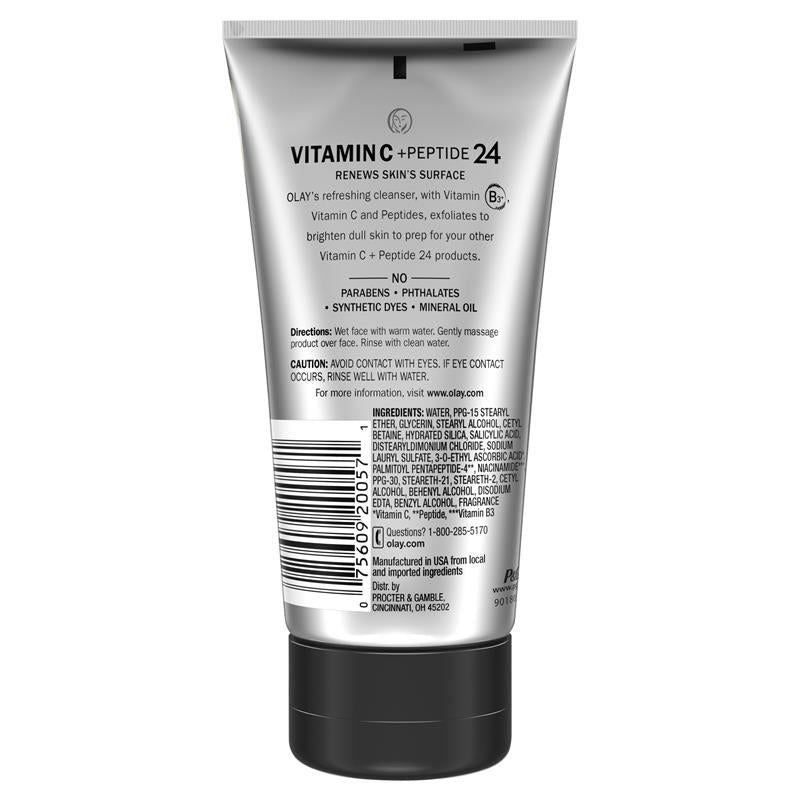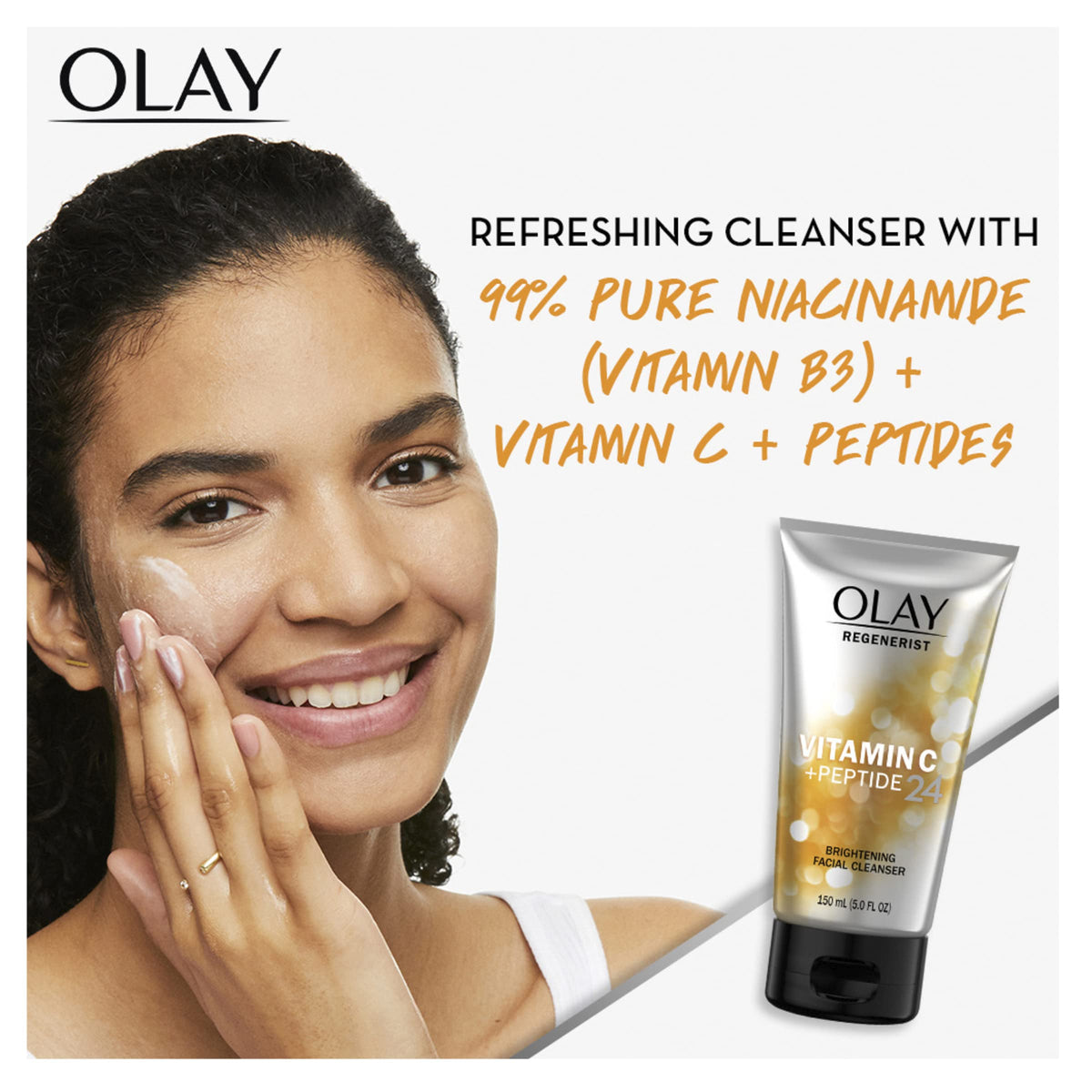Olay Regenerist Viamin C + Peptide 24 Brightening Cleanser is formulated with Niacinamide (Vitamin B3), vitamin C and Peptides to exfoliate and brighten dull skin to prep for your other skin care products.