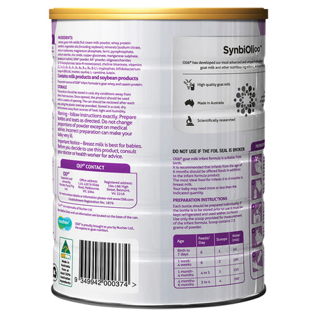 Oli6 Dairy Goat Infant Formula is proudly manufactured  in Victoria, Australia and we ensure that all ingredients used meet strict Australian regulations and requirements. You can rest assured that our formula is a safe choice to support your baby's nutritional needs.