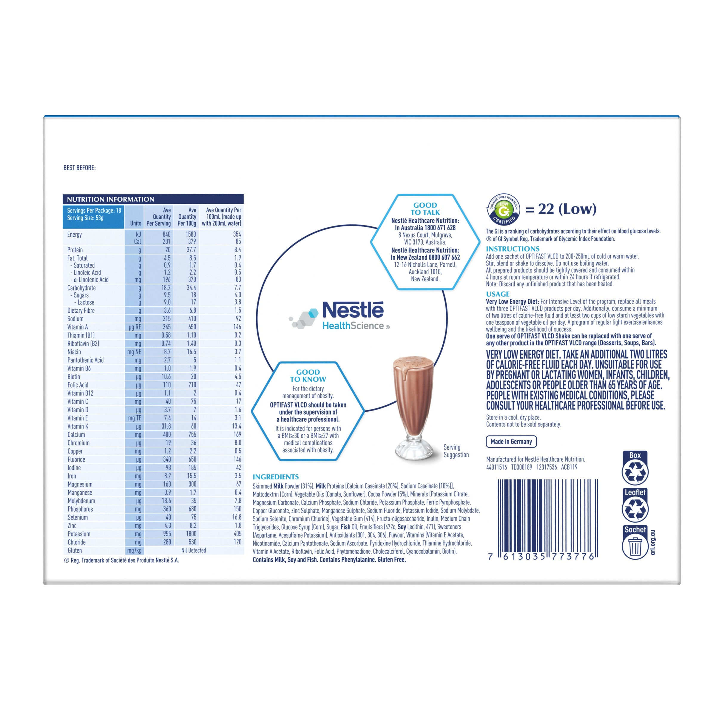 OPTIFAST VLCD Chocolate Shakes (Pack of 18) are part of a nutritionally complete, very low calorie diet program, which contains all of the nutrients required for safe and effective weight loss, including protein to help you preserve lean muscle mass while you lose fat stores.
