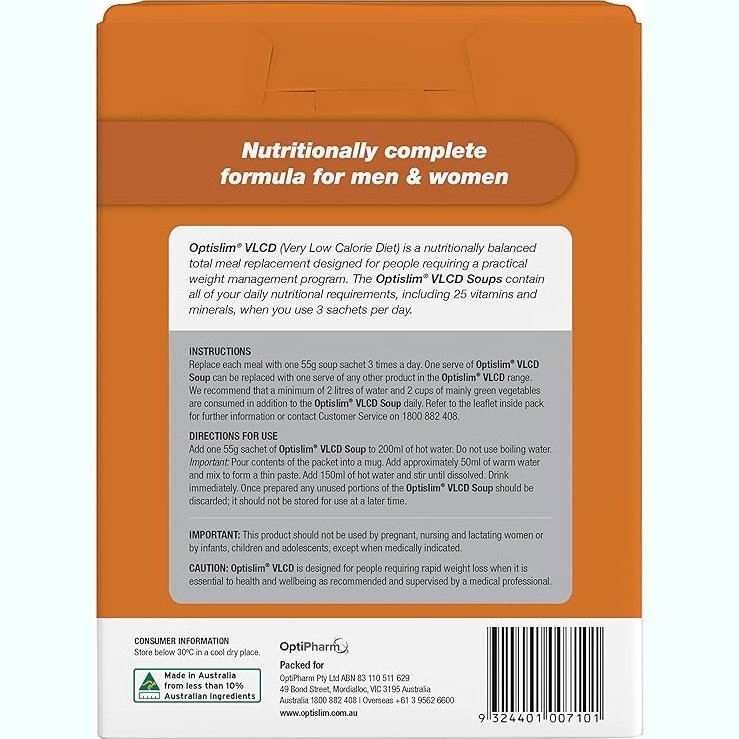 Pour contents of the sachet into a mug. Add approximately 50ml of warm water and mix to form a thin paste then add 150ml of hot water and stir until dissolved. Drink immediately. Once prepared any unused portions should be discarded, it should not be stored for use at a later time. One serve of the Optislim Life soup can be replaced with one serve of any other product in the Life range.