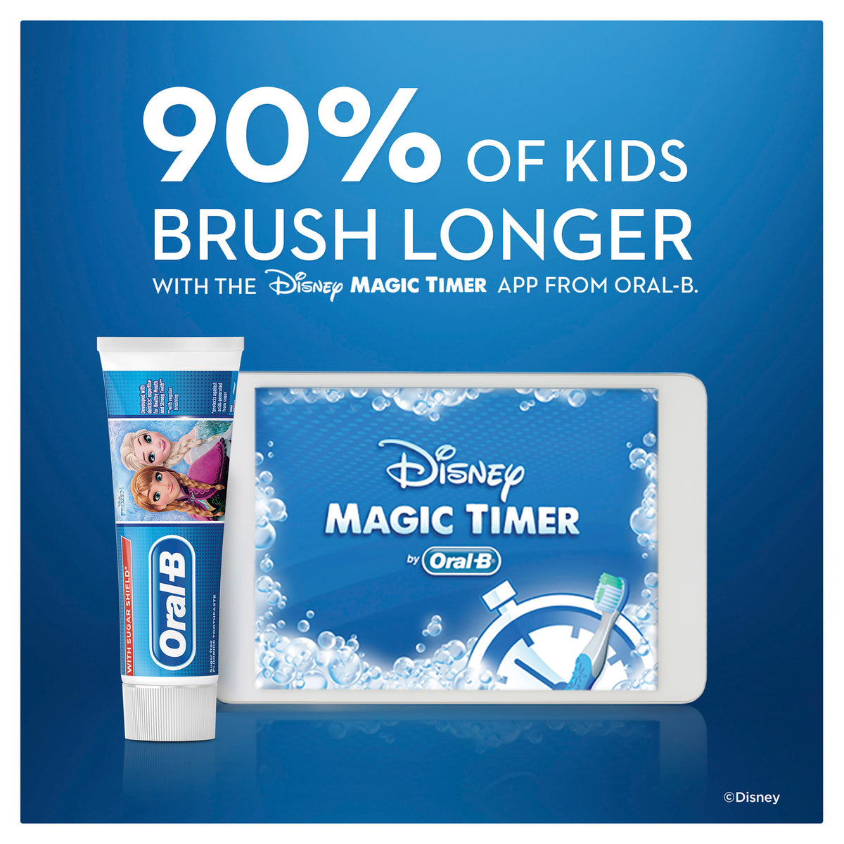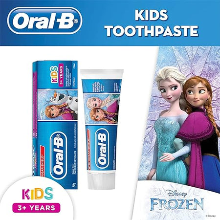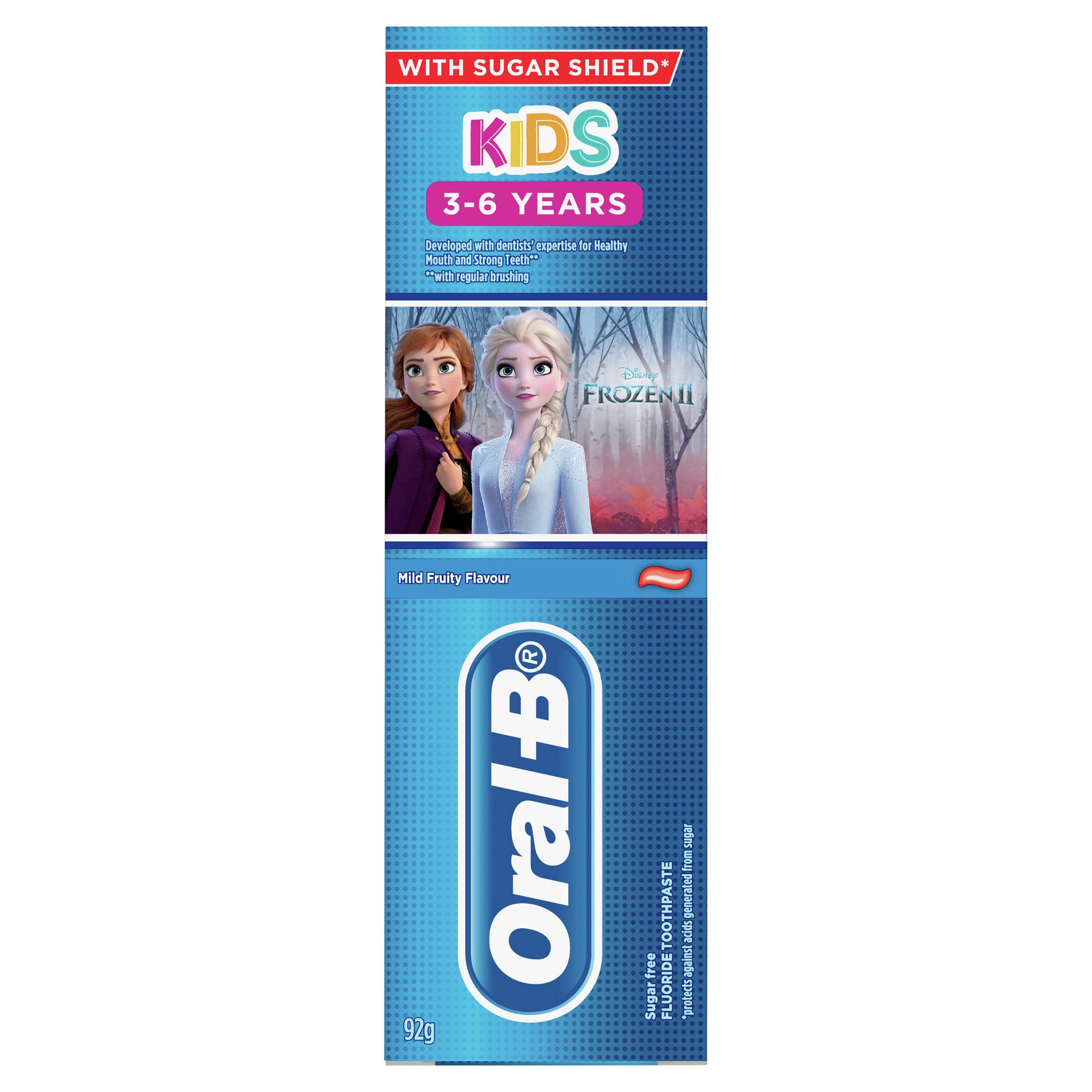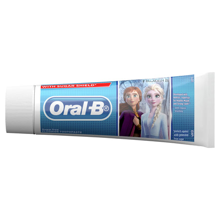 Oral-B Frozen Kids Toothpaste with sugar shield* protects your child's teeth from acids and sugars from everyday food. *protects against acids generated from sugar.Sugar-free fluoride toothpaste.